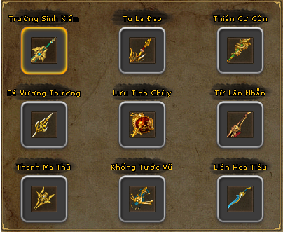 Vũ Khí Thần Binh bao gồm 9 loại:
