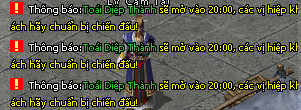 - 21h00 → bản đồ đóng, truyền tống tất cả về Tân Thủ Thôn.